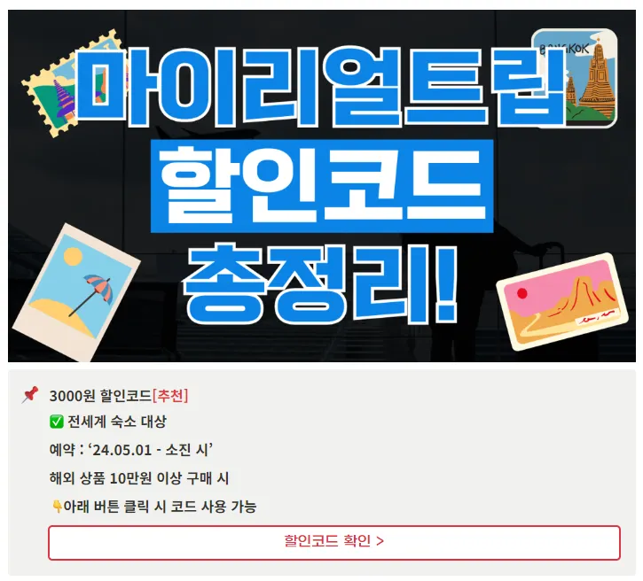 마이리얼트립 전용 링크로 접속하세요. 그래야 할인코드 입력란이 나타납니다.