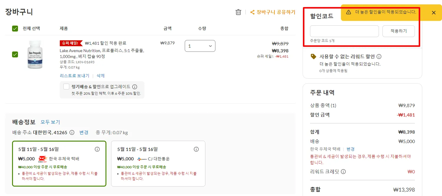 아이허브 전용 링크 접속 시 최소 5% 리워드 할인 적용